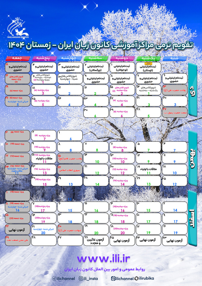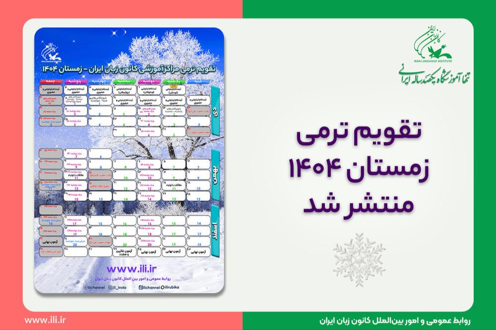 تقویم ترمی مراکز آموزشی کانون زبان ایران برای ترم زمستان ۱۴۰۴ منتشر شد.